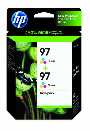 Tackle heavy workloads - this high-volume cartridge is ideal for frequent printing. Maximize your ink efficiency - get fast results and superior fade resistance while using less ink with HP's Vivera inks. Stay on top of cartridge replacement - automatic screen alerts let you know when a cartridge is running low or needs to be replaced.HP 97 Tri-Color Ink Cartridge in Retail Packaging, Twin Pack Feature